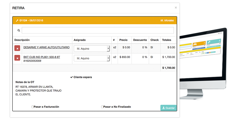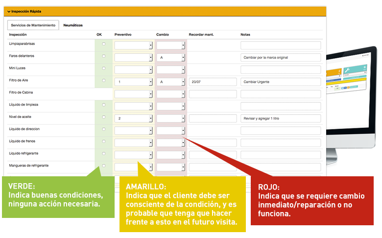 - Se revisa con el cliente el formulario de inspección y se agregan a la orden de trabajo los servicios que se marcaron en el formulario de Inspección